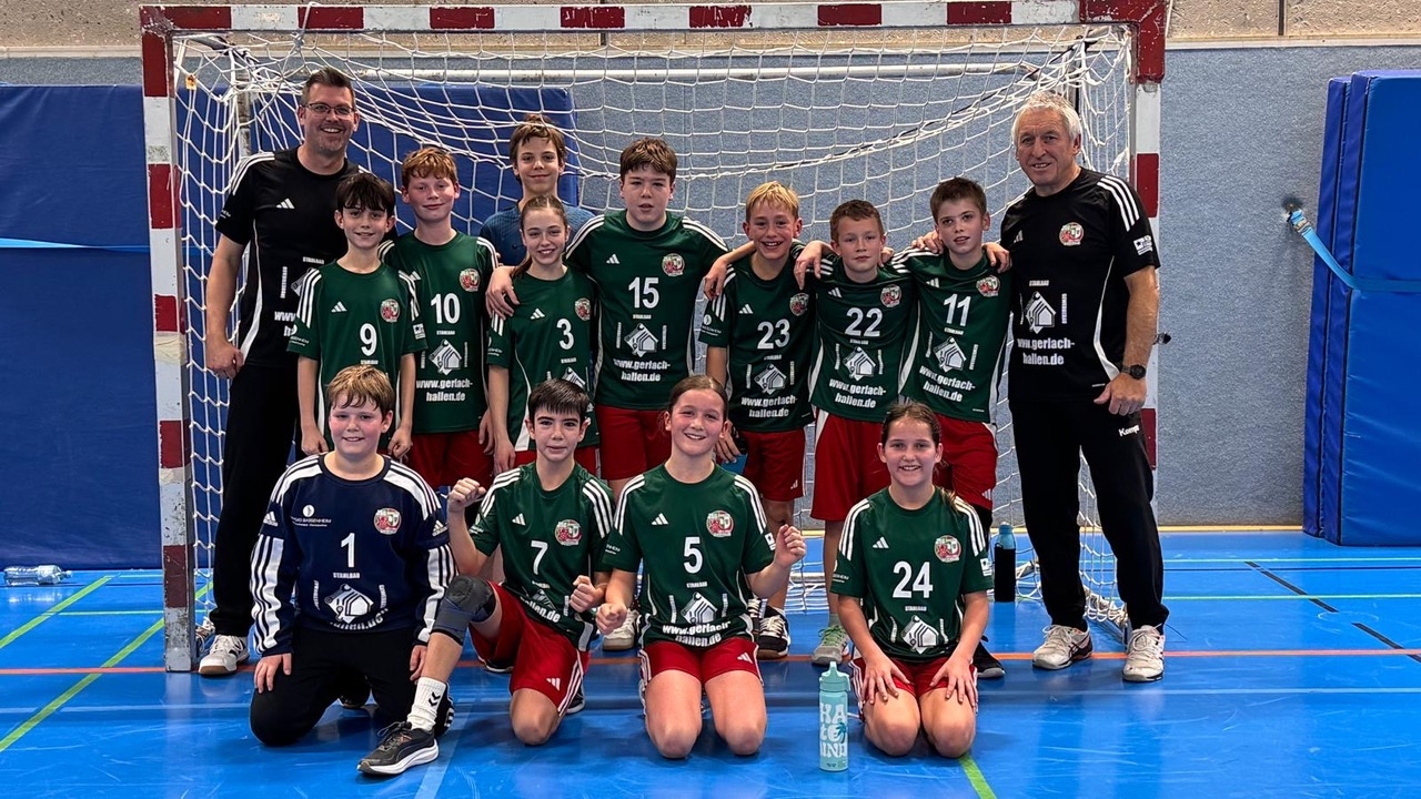 vordere Reihe v.l. Benedikt Harst (Tor), Maxim Gostiuk (7), Emma Gerlach (4), Viktoria Pung.