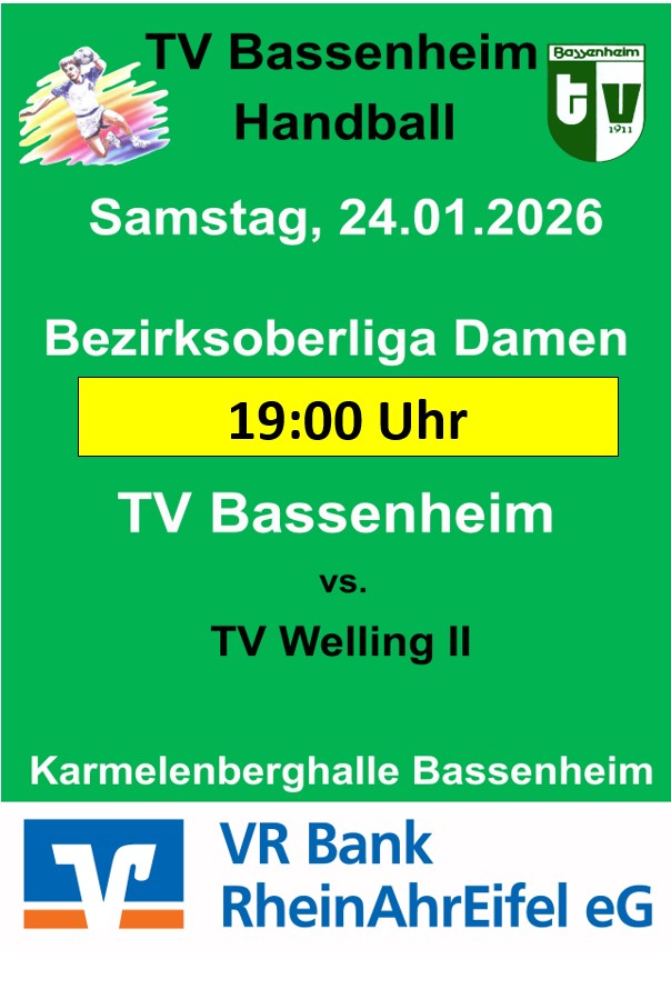 Das Heimspiel der Damen am Samstag, 24.01.2026 gegen den TV Welling II wurde wegen dem Spiel der Deutschen Nationalmannschaft bei der Handball-EM auf 19:00 Uhr vorgezogen.