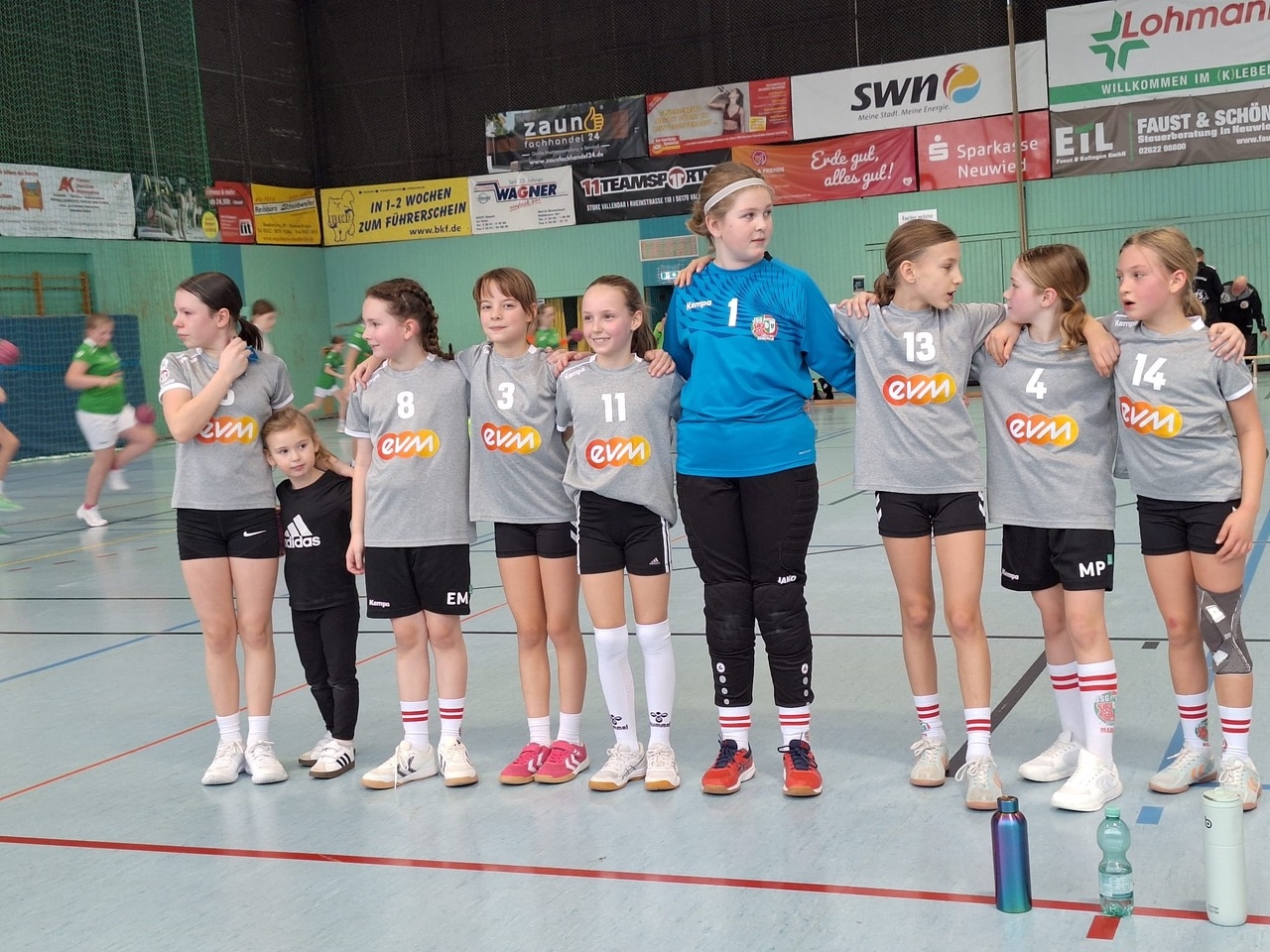In der 2. Hälfte wurde dann konsequenter gedeckt und Emma Kirst im Tor zeigte, wie schon bei der D-2, ihre Gala-Form. Des weiteren konnten Nele Schäfer und Johanna Reichert schöne Tore nach 1-1 Aktionen erzielen. Ebenso erfreulich waren die Aktionen von Maren Perske, die in der Abwehr sehr gut antizipierte und sich vorne treffsicher zeigte. Treffsicher war auch Ella Dünchem die auf 3 Tore kam. Am Ende sprang ein 31:15 Auswärtssieg heraus und die E-2 bleibt weiterhin der einzige Verfolger unserer E-1.