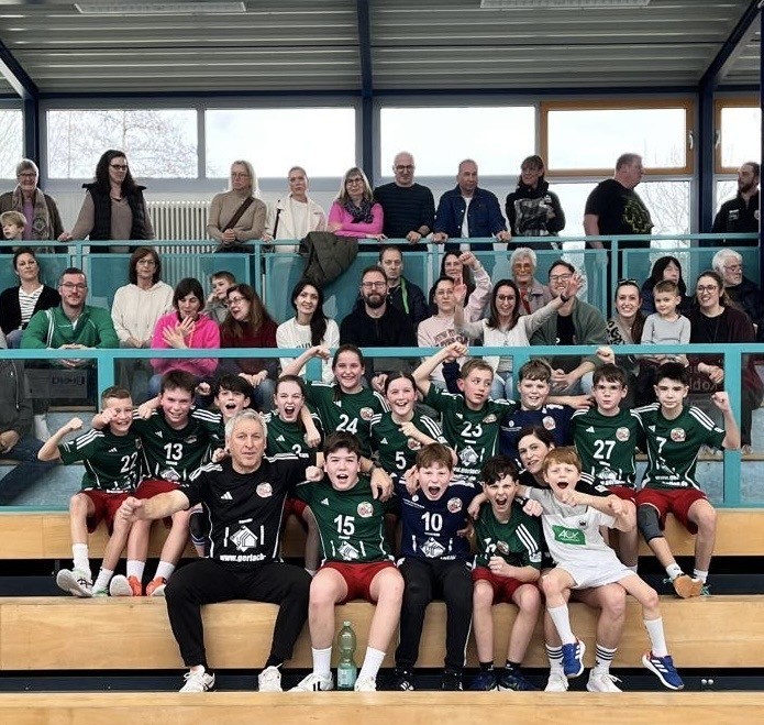 (Position/Tore): vordere Reihe v.l. Trainer Karl – Heinz Hoffmann, Mats Wagner (2), Maximilian Klapthor (Tor), Thomas Schleich, Trainerin Nathalie Oster, Fan Mika Klapthor, hintere Reihe v.l. Mats Roth, Tom Jerger (2), Ben Hübinger (2), Frieda Saxler (7), Viktoria Pung (3), Emma Gerlach (1), David Hoffmann (2), Benedikt Harst (Tor), Marcel Ising, Maxim Gostiuk (1).
